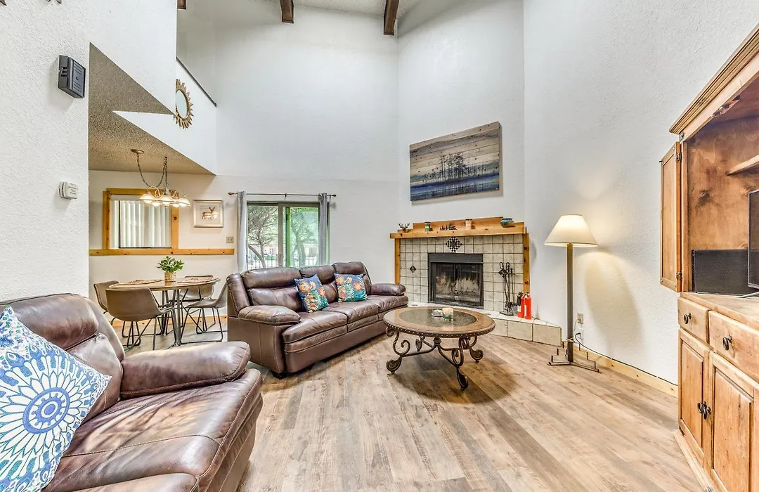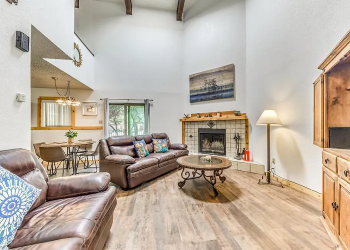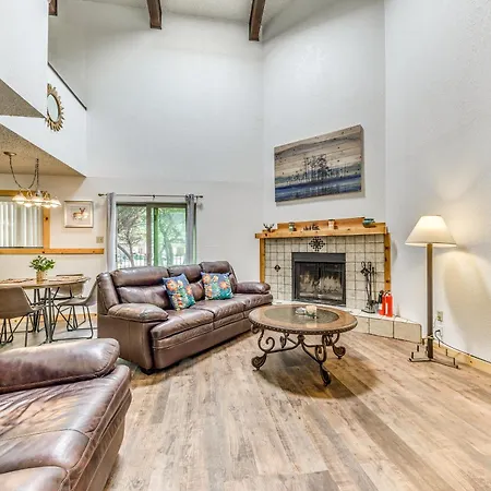 Relaxing Ruidoso Retreat Walk To Midtown! Apartment has an oven, a stovetop, and a dishwasher at a fully furnished kitchen for preparing meals. Access to a golf playground helps guests maintain their bodies. This apartment also offers a barbeque grill on its balcony.